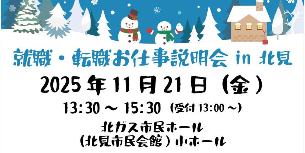 11月21日(金)に北ガス市民ホールにて開催されるジョブカフェ北海道様主催の就活イベントに参加いたします。